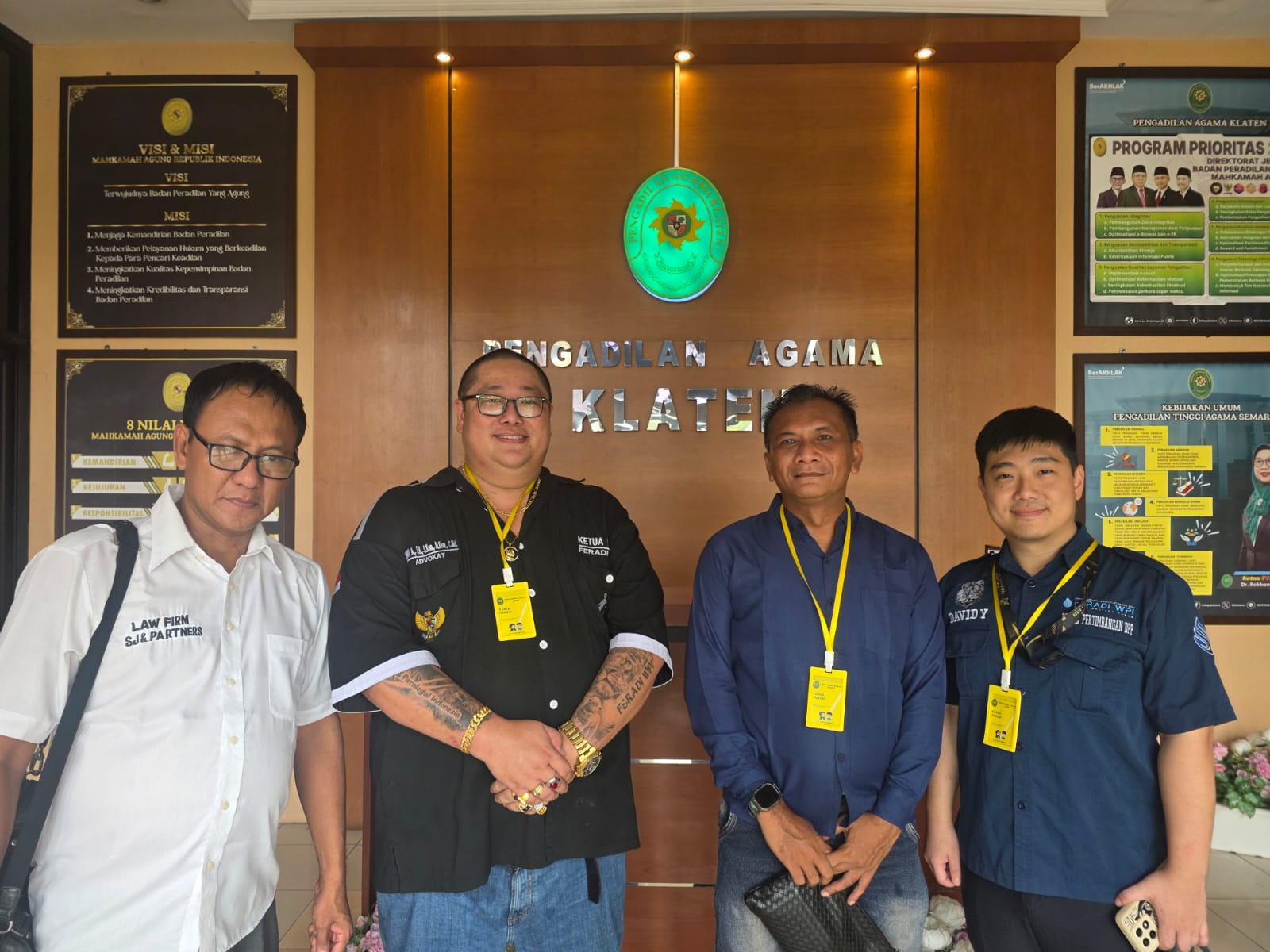 Advokat / Pengacara Kawakan Donny Andretti, S.H., S.Kom., M.Kom., C.Md., C.PFW., C.MDF., C.JKJ. didampingi David Yuwono SH MH LLM, S.E., M.M., M.B.A., C.PFW., C.MDF., C.JKJ Bendahara Umum III DPP FERADI WPI, Basriyanto, C.PFW., C.MDF., C.JKJ. Kepala Divisi DPP FERADI API dan M. Arifin SH MH S.Sos., M.M., C.MDF., C.PFW. C.JKJ. sebagai Kuasa Hukum Para Termohon Aanmaning menghadiri Sidang lanjutan Aanmaning di Pengadilan Agama Klaten dengan Nomor Perkara 0009/Pdt.Eks.HT/2025/PA.Klt.